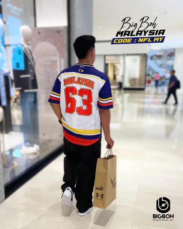 T-shirt NFL Edisi Malaysia memberikan anda sentuhan baru berkonsepkan rumah tradisional negeri kesayangan. Simbolik rumah tempat berteduh yang memberikan rasa nostalgia yang tidak akan ditemui walau dimana pun anda berada, keluaran BIGBOH kali ini memberikan nafas baru pada sebuah kenangan.